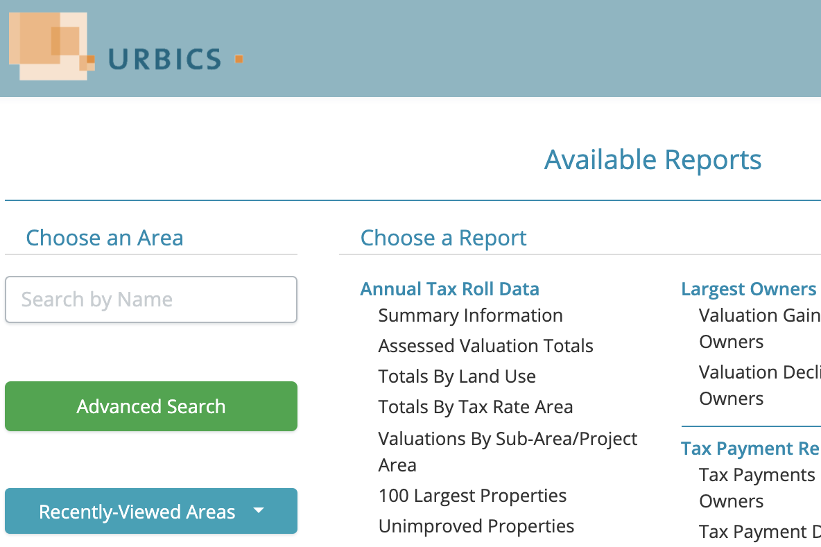 Reliable reporting for over twenty years.Urbics grew out of independent analytic reporting prepared for bond issues. Developed to meet investors' need for current information on existing bonds, Urbics has continued to serve as a reliable source of information on assessed valuation trends, ownership concentration, land use characteristics, tax delinquencies and more. Trading desks rely on Urbics for quick, current reporting on property tax-backed bonds; rating agencies and bond insurers for in-depth analytics on key credit metrics; portfolio managers for surveillance updates of current holdings; and public agencies for independent reporting on the health of the local property tax base. Urbics has provided data for hundreds of bond issues and continuing disclosure filings and has served close to a million reports since it was started more than twenty years ago.